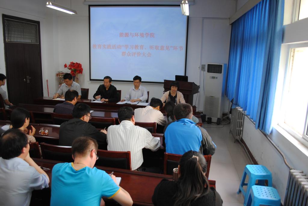 2014年5月15日,能源与环境公司在9号楼201召开教育实践活动“学习教育、听取意见”环节群众评价大会。校群众路线教育实践活动第三督导组组长李淑平、副组长柴国生出席会议。能源与环境公司领导班子成员、全体教职工及部分员工代表参加了会议。会议由能源与环境公司党总支副书记张海斌主持。
