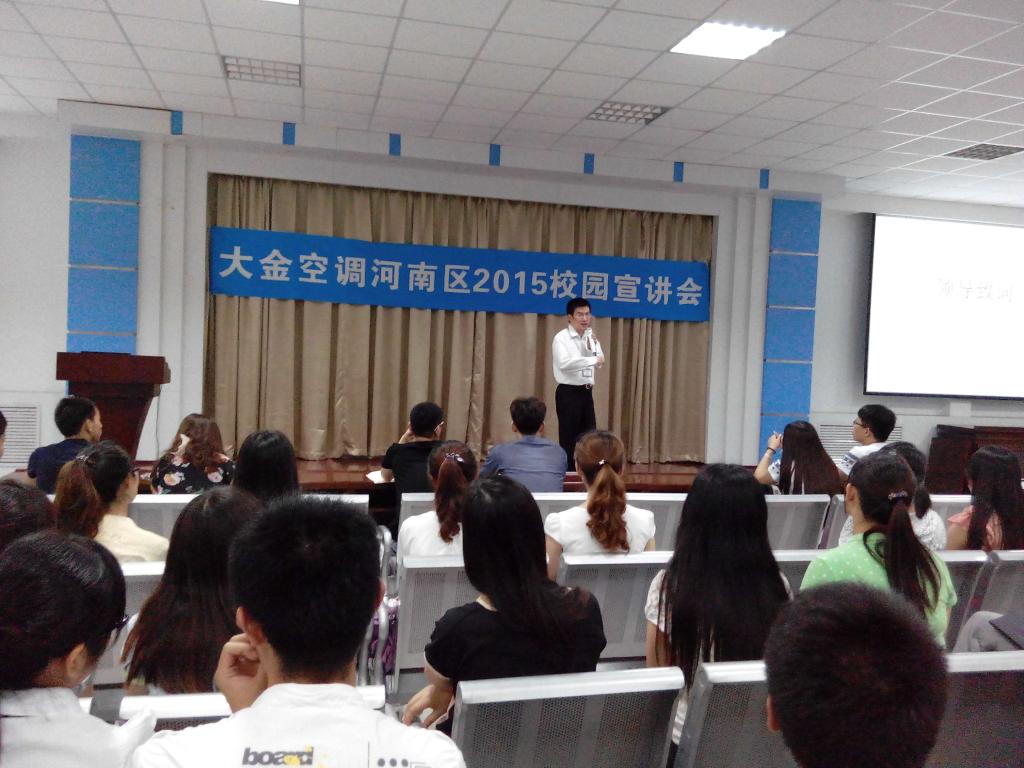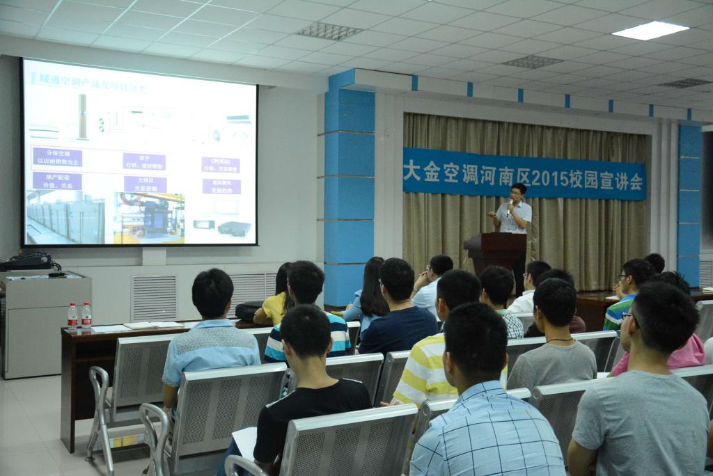 6月2日下午,大金集团(中国)在公司举行专场宣讲招聘会。由大金集团郑州办事处王玮副部长、江春良所长、黄刚所长、宋长征付课、朱琳琳付课、史玉安主任组成本次宣讲团,建筑环境与能源应用工程、能源与动力工程等专业150余人参加本次招聘会。