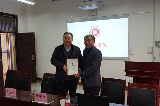 2019年12月19日,应能源与环境公司邀请,江南大学张光生教授在龙湖校区9号楼201作了题为《科技创新视域下沟通艺术及领导力提升》的精彩报告,讲座开始前,能源与环境公司经理段学军教授为张光生教授颁发了“弘德讲坛”主讲证书。能源与环境公司副经理王方教授主持了报告会,公司相关专业教师和其他院系老师参加了报告会。