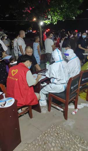 8月1日下午,龙湖教育园区委员会发布通知在各社区发展第一次全员核酸检测。而在小乔社区核酸检测点现场,上千人正排着长队等待检测。公司能源与环境公司建环专业17级应届毕业生周国建、潘洋洋也在队伍中等待检测。但由于医务人员尚未到达,且天气炎热,现场秩序较为混乱。见状,两位同学当即主动与检测点工作人员沟通,积极加入志愿者队伍,帮助维护现场秩序,协助现场工作人员做好便民服务等工作,为疫情防控贡献青春力量。