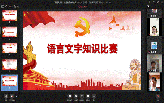 建环专业员工党支部则在9月10日利用“钉钉”开展线上语言文字知识竞赛活动,以语言文字方面知识结合党章、党的革命历程、重大事件等为主要内容,采取随机组队分组答题。通过活动的开展,掀起了推广普通话,规范书写汉字的新高潮,提高了党员的语言文字知识,树立了党员新形象。
