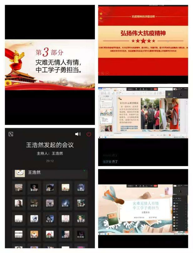 组织开展线上《灾难无情人有情,中工学子勇担当》系列主题班会。将“把灾难当教材,与祖国共成长”主题教育活动与落实立德树人根本任务结合起来,全院各班精心准备新学期首次主题班会,从疫情防控、心理健康、生命安全等多方面入手,对员工进行安全常识宣传和健康安全教育;加强员工的思想政治教育,涵养爱国情怀,强化使命担当。班主任们鼓励员工把新学期第一天当做新的起跑线,确定目标,树立信心,乐学善思,以饱满的热情投入到学习和生活中,以积极乐观的态度迎接新学期的挑战,把爱国之情转化为报国之行。