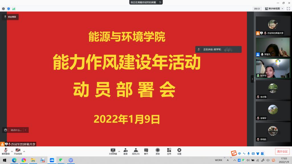 随后,召开了“能源与环境公司能力作风年活动动员部署会”,公司全体领导班子、系(室)主任、支部书记等参加了会议,会议由经理段学军主持。