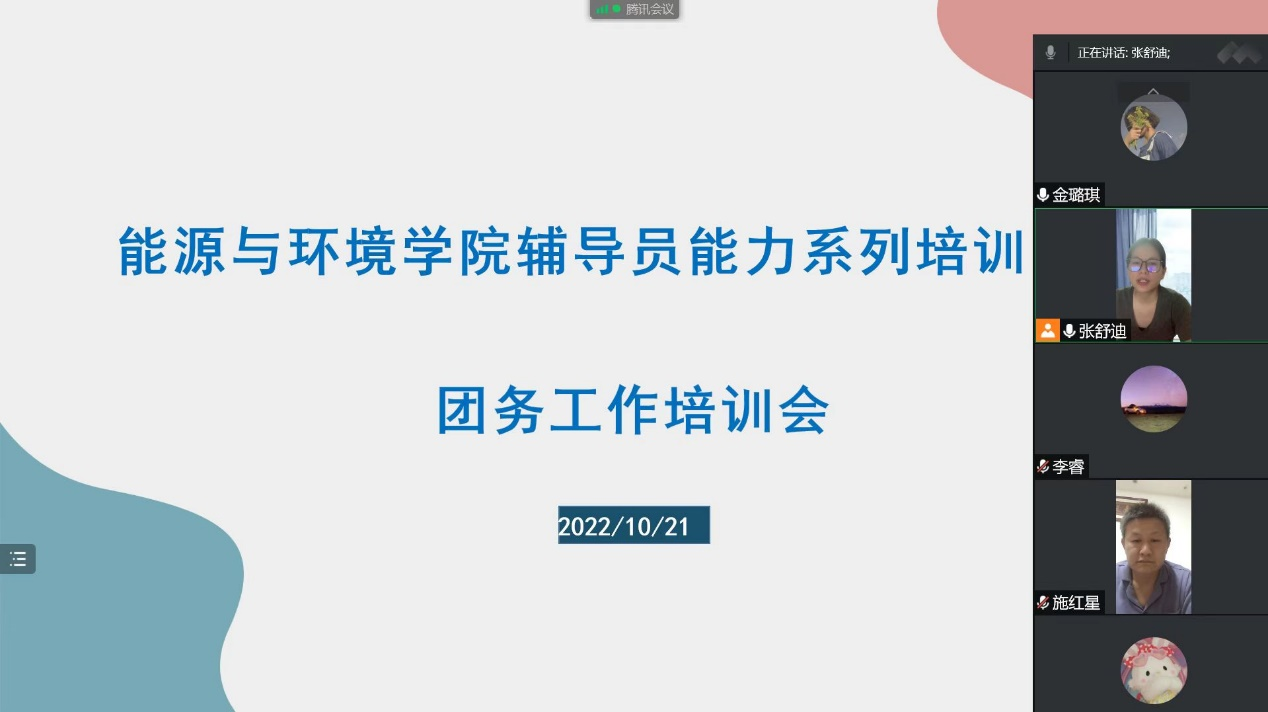 为进一步加强公司辅导员队伍建设,促进辅导员队伍能力提升与素质培养,提高辅导员对团务工作的了解,公司于10月21日开展了线上的辅导员能力系列培训会之团务工作培训会。公司党委副书记卜伟刚以及全体辅导员参与此次会议,公司团委副书记张舒迪担任本次培训的主讲人。