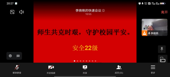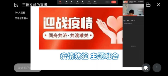 本次班会主题是:师生共克时艰,守护校园平安。主要强调,当前疫情防控正处于关键时期,员工一定要提升自我的安全防范意识,筑牢安全思想防线,并提醒同学们继续保持警惕心理,科学佩戴口罩,谨记少聚集、戴口罩、勤洗手、多通风等基本防疫要求,牢记常态化疫情防控下的安全防范知识与注意事项,做好长期防护准备,关注时事新闻,不要隐瞒个人行程。