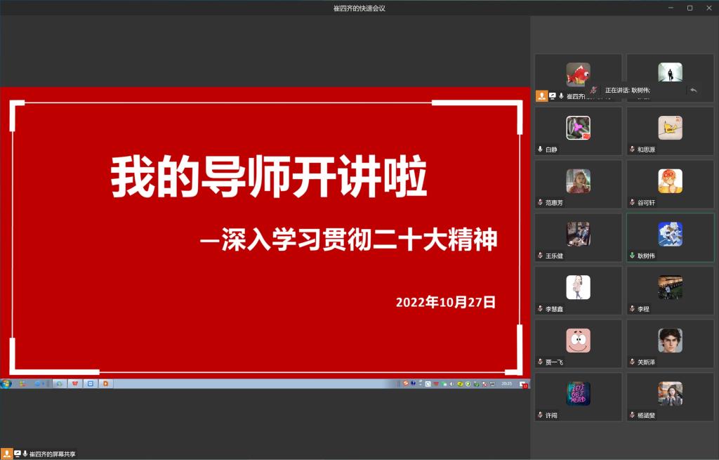 为深入贯彻落实党的二十大精神,能源与环境公司开展“我的导师开讲啦”主题教育活动,以组会形式,有针对性地围绕研究生所挂念的科研、学习、就业、读博等问题进行政策解读及帮扶。