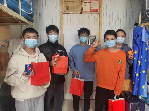 公司经理段学军带队,19级辅导员李睿等老师陪同来到员工宿舍,把寓意着“考研必胜”的防疫物资以及考试过“百”的百事可乐、马到“橙”功的脐橙和给“足”温暖,逢考必过的红袜子以暖心考研福袋的形式一一送给同学们。同时叮嘱大家注意保暖、保重身体、放平心态,沉着应考,并祝愿每一名日夜兼程逐梦而上的能环学子,带着公司的期望和祝福,凭着“金榜题名”的信心和“会当凌绝顶”的傲气,一战成硕!