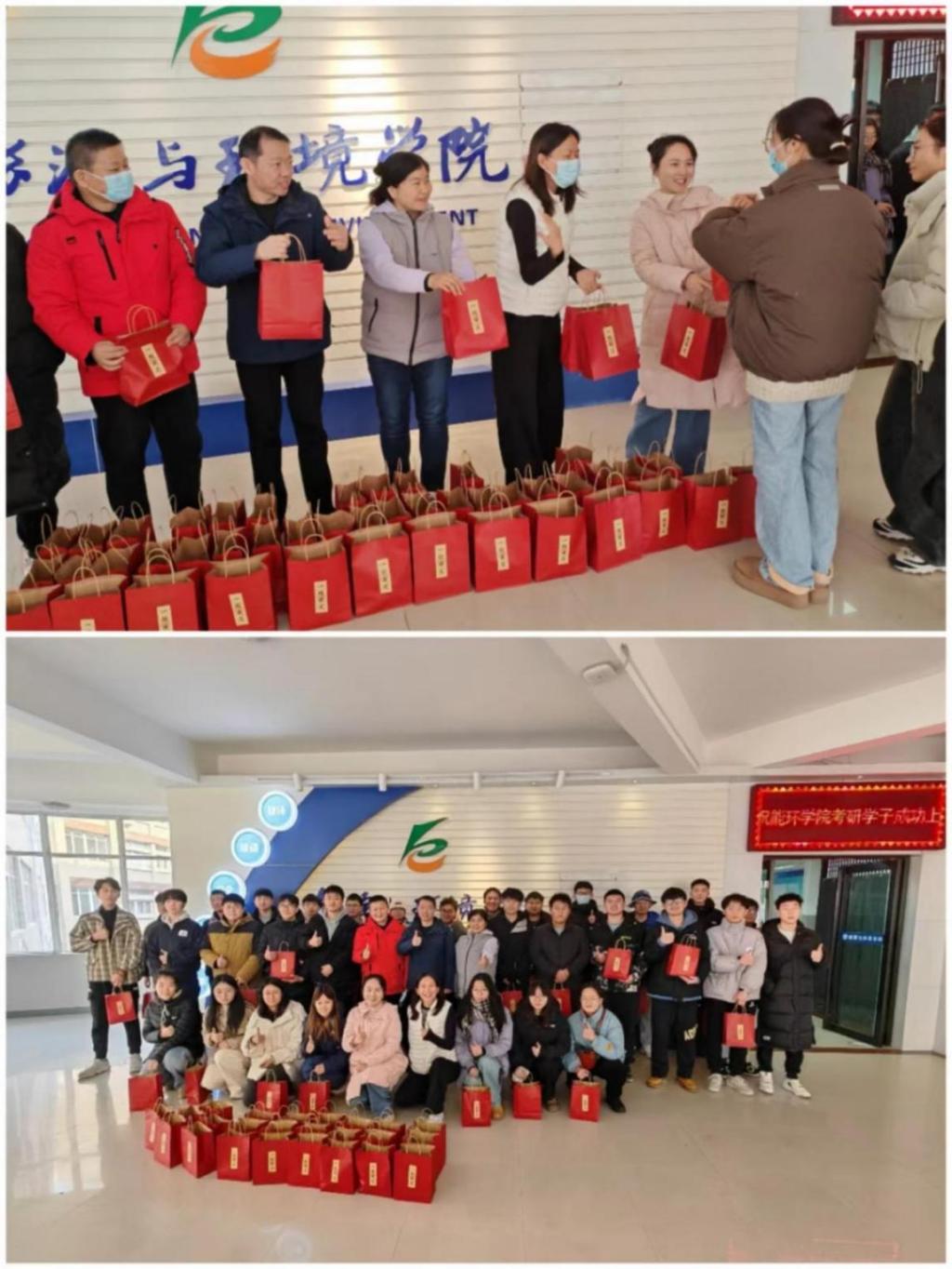 最后,老师们为考研学子发放了精心准备的考研“暖心包”,内含一盒薯愿、一罐旺仔牛奶、旺仔牛奶糖、两个脐橙以及两枚饱含祝福的胸针,表达了公司对考研学子的美好祝愿,预祝同学们考研成功、一战成硕。