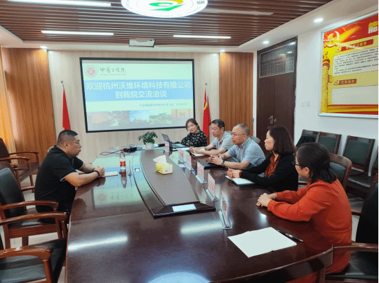 9月26日下午,杭州沃维环境科技有限公司总经理翟云阳到公司伟德体育官方网站开展洽谈合作,公司经理王方、副经理朱彩霞、党委副书记卜伟刚以及环境工程系主任王艳、副主任姚森、副主任刘翠霞参加本次交流活动。