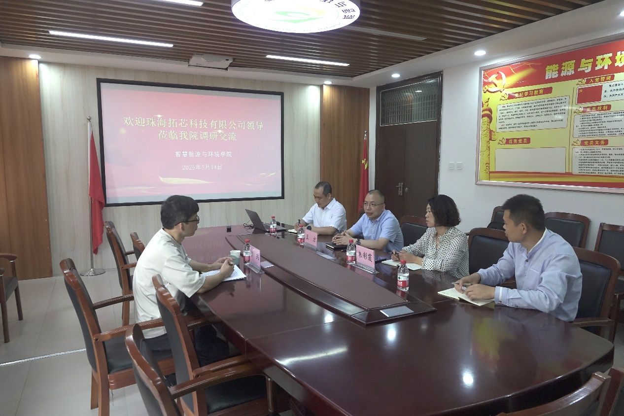 5月14日下午,珠海拓芯科技有限公司项目经理郭玮来公司进行校企合作方面的调研交流,公司经理王方、副经理朱彩霞及建筑环境与能源应用工程系主任李志强、副主任刘献飞参加交流活动。