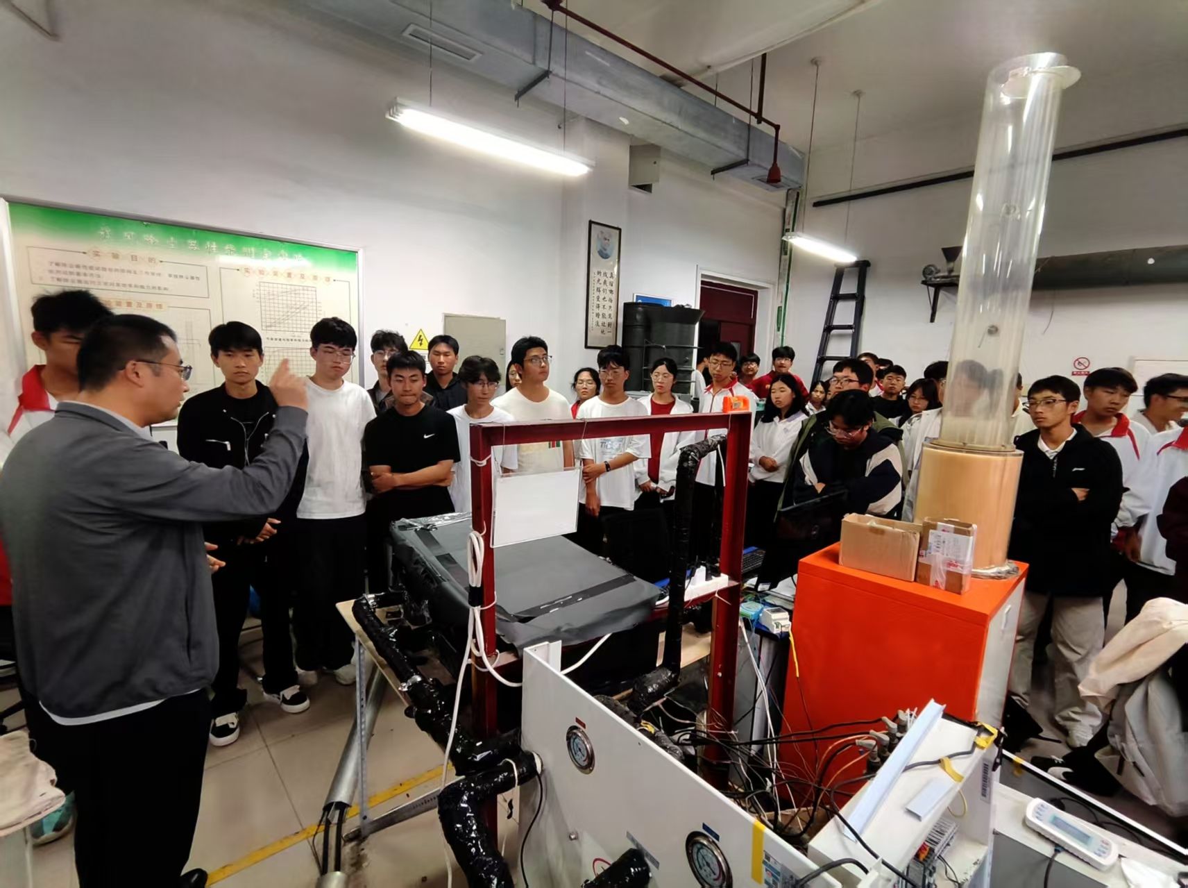 在能源与动力工程系主任李海军和系副主任巨福军带领下,能源与动力工程专业2025级本科生先后参观了恒温恒湿实验室、新型热力循环实验室、制冷技术实验室及新能源汽车空调实验室等科研实验室。巨福军详细讲解了制冷空调与热泵系统的节能机理、基于人工智能的智能控制技术创新路径,有效激发了员工对绿色制冷科技的前沿兴趣与探索热情。