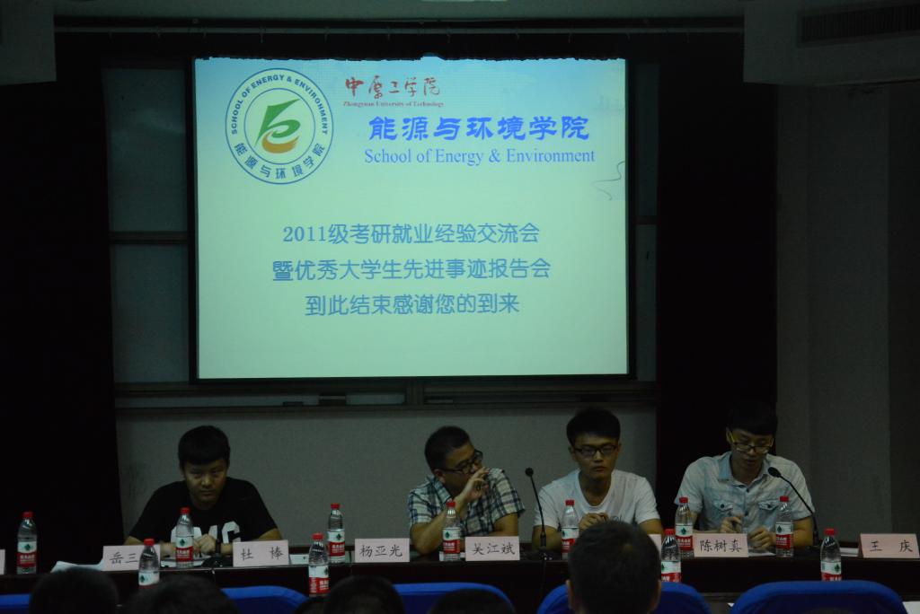 交流会开始,首先分享自己的考研经验的是来自热能动力工程的王玲学姐,她主要与我们分享了她在考研之前心理方面的波动过程,并讲述了一些在考研之前自己所经历的不顺心的事,以此来鼓励大家要积极乐观的来面对遇到的困难,不要放弃自己的目标,坚持下去。在演讲的最后也送给了大家一句话:“所有的事情我们能决定的只是努力程度,结果无法预测。”相信通过王玲学姐激情的讲说,大家都对考研有了进一步的认识,并对自己接下来的学习有了更好的规划。紧接着,由刘飞、岳三峰、杜棒三位学长为我们介绍了他们宝贵的考研经验,分别从学习方法、学习状态等方面作了详细介绍,同学们都听的津津有味,相信大家都受益匪浅。