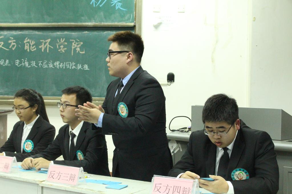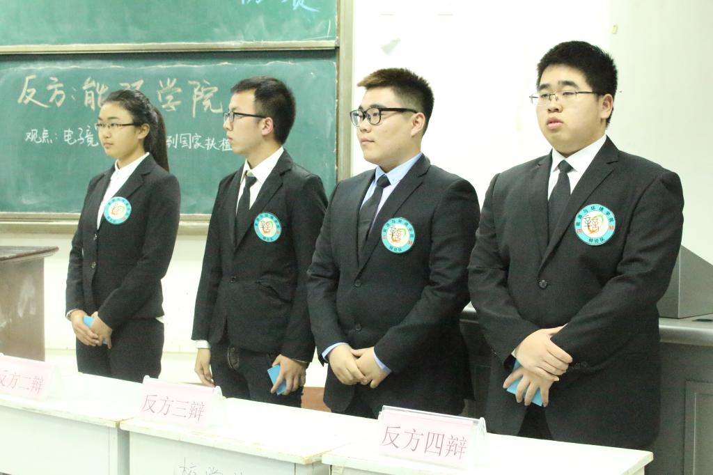 比赛开始,公司辩手闫晓涵,李程威,杨宇轩,潘安南秉持着“友谊第一,比赛第二”的理念,以精辟有力而不失文雅的开场白,赢得全场热烈的掌声,瞬间点燃了现场的氛围!紧接着进入开篇陈词阶段,我方一辩以清晰的谈吐,紧密的逻辑思维阐明了我方的观点。在接下来的攻辩阶段,我方辩手冷静沉着,面对服装公司的连环攻击,他们愈战愈勇,展现了辩手们高超的辩论技巧。自由辩论阶段,公司辩手妙语连珠,唇枪舌剑,在对方辩手咄咄逼人的气势下,他们毫不示弱,以巧妙的言语将对方的论点逐一攻破!把比赛一次次的推向高潮,赢得了观众们此起彼伏的掌声!在最后的总结陈词阶段,公司四辩据理力争,不仅指出了对方观点存在的漏洞,还再次强调了我方观点,为本次辩论画下一个完美的句号!