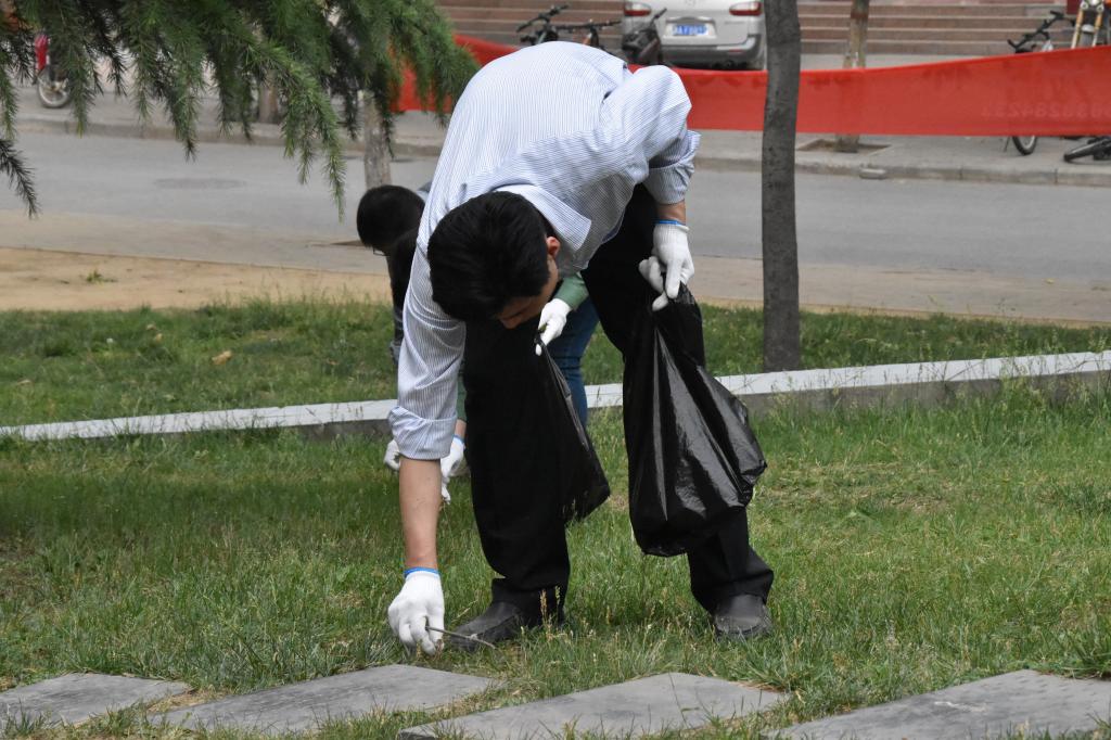 刚到目的地,大家便不约而同的拿起垃圾袋寻找地上的垃圾。由于长时间没打扫,草坪上积攒了许多垃圾,但人多力量大,在众人的认真努力下不出片刻便将“情人坡”打扫的干干净净。劳动的过程虽然辛苦,公司师生却乐享其中。在他们的谈笑风生中,似乎忘却了捡垃圾的脏和累,有的只是对校园的一份深爱一份责任。活动到最后,老师和同学们望着通过自己努力恢复洁净的“情人坡”也露出了欣慰的笑容。