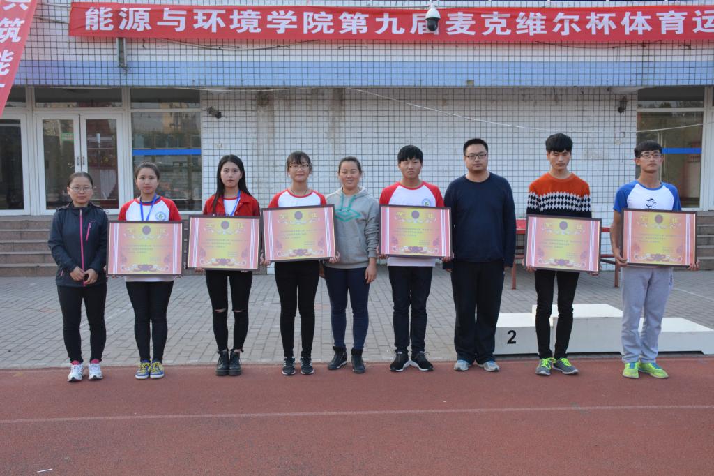 下午4:00,闭幕式正式开始。老师们为成绩优秀的班级颁发奖杯和奖状。其中能动162、164,给排水162等班级荣获体育道德风尚奖,给排水161班、建环162和建环161班分别荣获团体总分一二三名。卜艳萍老师致闭幕词并宣布能源与环境公司第九届“麦克维尔杯”体育运动会圆满结束。