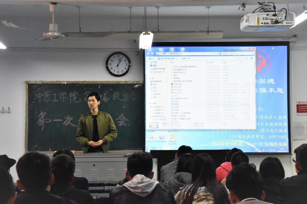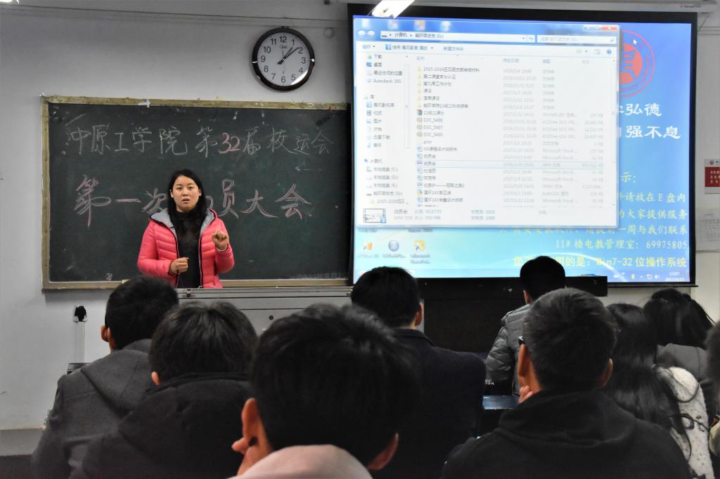 会议刚开始,由公司员工会主席团李正润同学作开场致词。紧接着为同学们播放视频,视频中同学们可以看到前两届运动员平时的训练和赛场上奋勇拼搏取得好成绩的场景。视频中的种种向我们诉说着公司曾经的辉煌历史。紧接着,由公司16届辅导员卜艳萍为运动员们打气加油。并告诉运动员们在比赛中如果遇到苦难一定要沉着冷静面对,更要团结一致,发挥出最好水平。最后,此次动员大会在公司同学们一同高喊能环口号:“激情飞扬,能环最强”中圆满结束。
