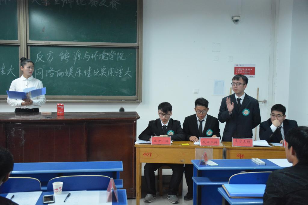 4月 17日下午6:00在3#107能环公司与法公司进行了争夺四强的辩论比赛, 辩论赛的辩题是:法公司(反方)“网络的实用性大于娱乐性”和能环公司(正方)“网络的娱乐性大于实用性”。