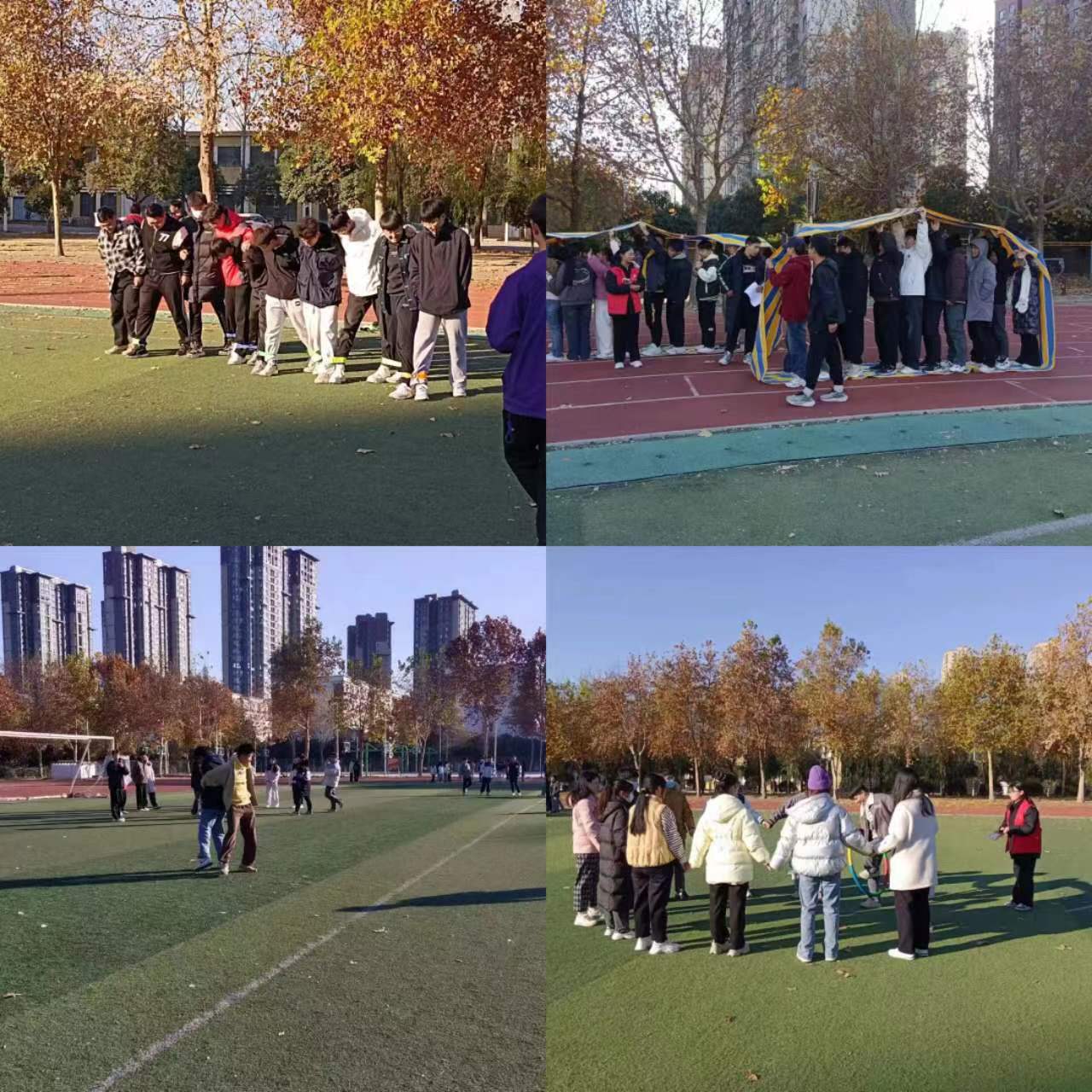 本次素质拓展运动会在初冬的暖阳下正式拉开帷幕,共设有十人九足、不倒森林、呼啦圈接力、毽子借力、心心相印、心灵手巧、环环相扣、无敌风火轮、纸杯传球九个趣味运动项目。