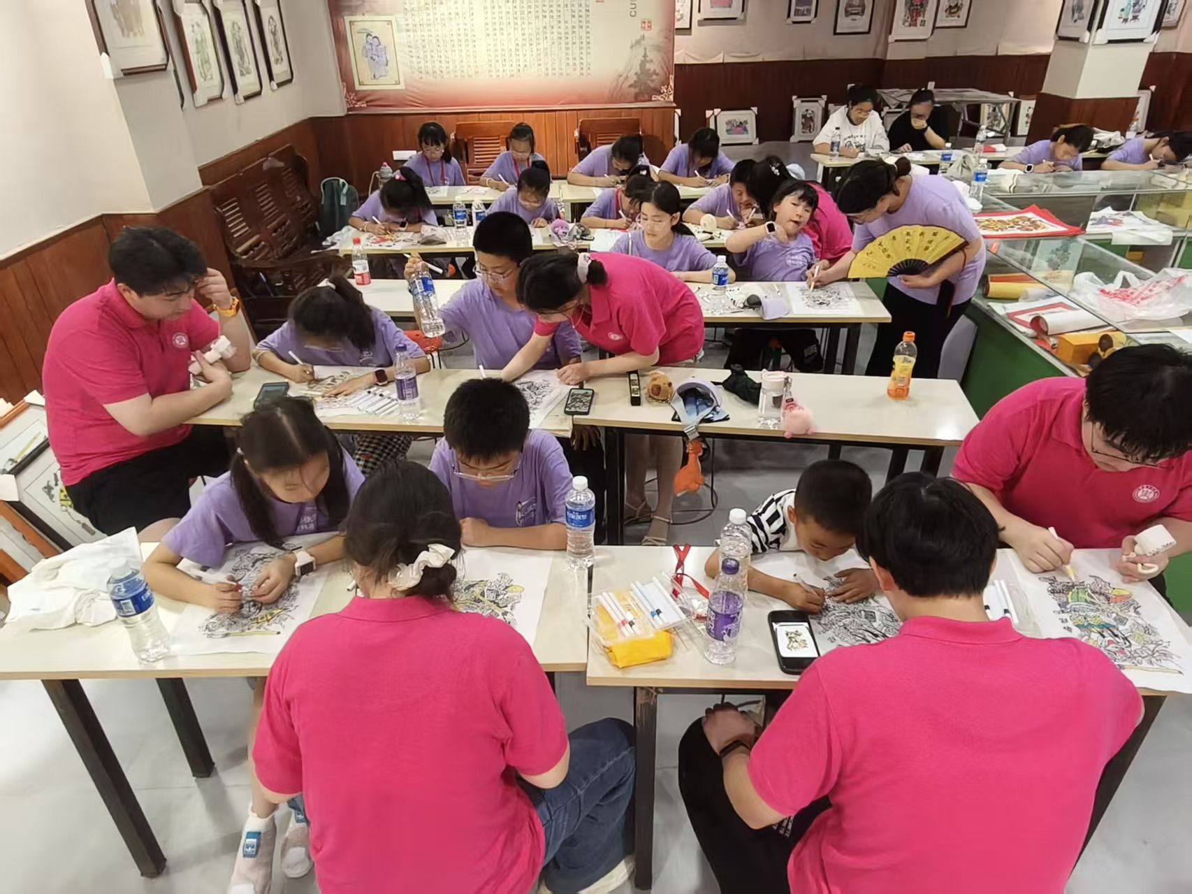 活动伊始,同学们在工坊中跟随非遗传承人观察雕版纹理、观摩颜料调配,系统学习相关知识,深入了解勾描、刻版、印刷等传统工序;同时聆听画师讲述年画中的古老故事,认真记下适合讲给小朋友的趣味片段。随后,同学们化身“非遗小老师”,以简洁的话语为小朋友们解答疑问,带领他们共同体验简单的年画图案印刷,并手把手指导上色环节。在此过程中,同学们还和小朋友一同整理画具、清扫场地,在互动交流中让孩子们真切感受非遗乐趣,同时领悟“认真做事、收拾整齐”的道理。此外,同学们还抓住机会向在场围观的家长简要介绍木版年画,助力更多人了解这一国家非遗,进一步扩大了活动的影响力。