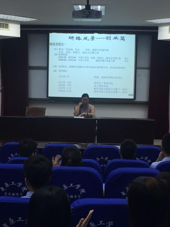 5月31日下午,由能源与环境公司、研究生处举办的研究生创新教育“研途成长”专题系列讲座——拓展学术视野,畅谈“研”途风景,在4#311学术报告厅进行。此次讲座的主题为“启发、领悟、成才”。讲座邀请到了在科研、考博、创业三个方面取得优异成绩的学长学姐,他们分别是能环公司13级研究生田国记、纺织公司13级研究生顾龙鑫、能环公司10级研究生毕业生杜佳迪。田学记学长以自己为例,分别从研一的学习规划、学术研究的方法、考博的准备等方面讲述了自己的经验。顾龙鑫学姐向我们强调了研究生期间学习英语的重要性,分享了她考博的经验,尤其是在考博面试应该注意的方面,大家都深有感触。杜佳迪学姐自主创业,更多的是讲述了创业需要的一些必要因素。创业不能只是一个口号,更多的是行动力。讲座结束后,大家都积极的与学长、学姐交流自己的想法,并且得到他们的耐心解答。