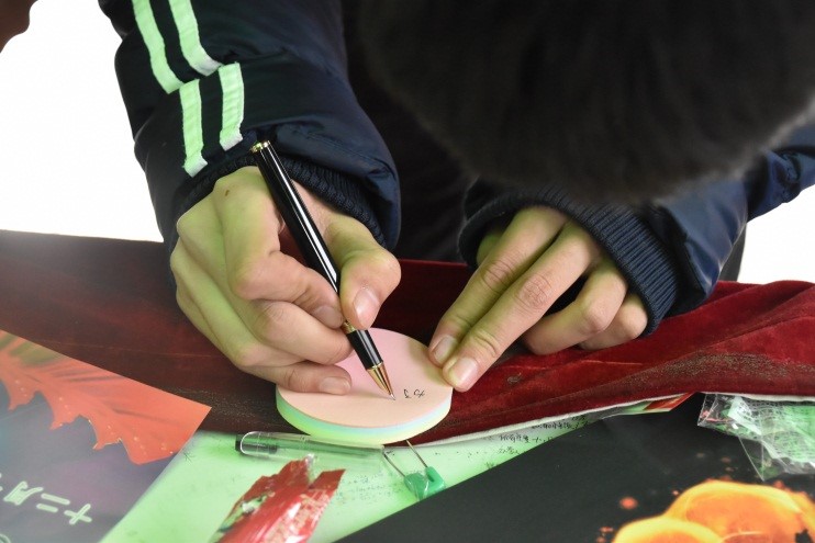 在便利贴上写上对班级的祝福