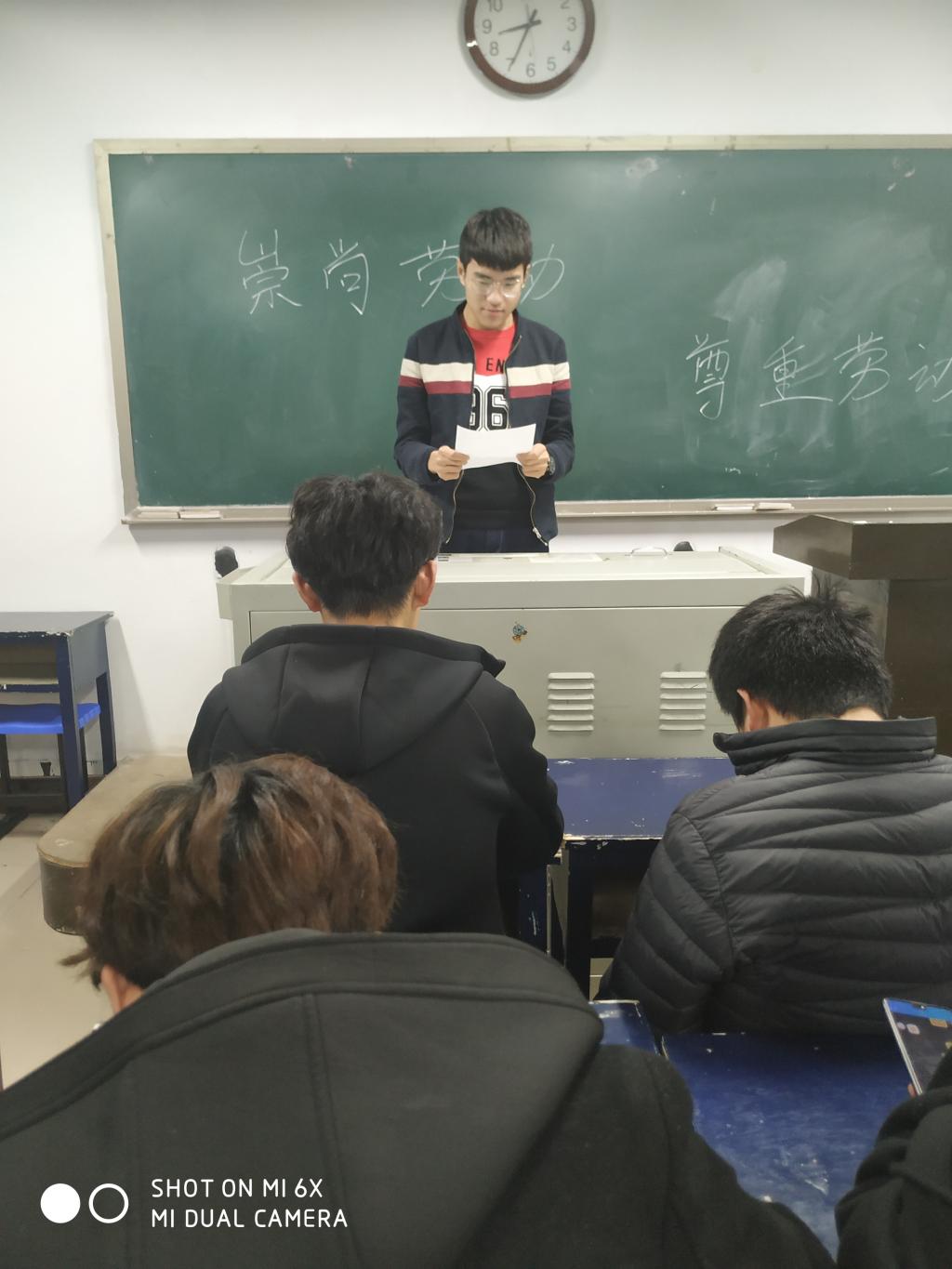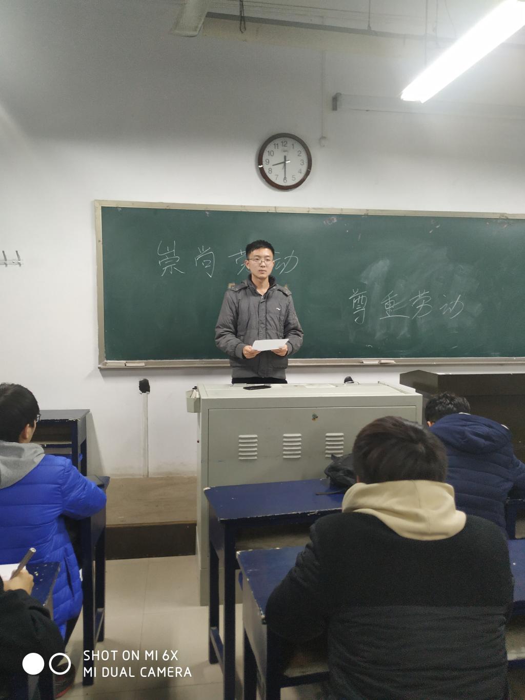 在12月12日晚上,给排水181班在11#425开展了“崇尚劳动,尊重劳动”主题班会,班会由181班班长赵安东,181班宣传委员万安主持,给排水181全体成员参加了班会,此次活动旨在培养同学们养成热爱劳动,尊重劳动者的好习惯。