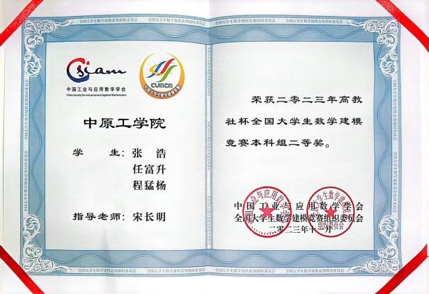 近日,2023年全国老员工数学建模竞赛结果公布,公司2021级安全专业任富升、程猛杨、张浩建模队及2021级能动专业李灿、刘孟豪、董浩臣建模队分别斩获国家级二等奖和省级二等奖。