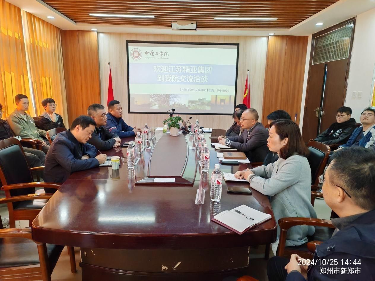 10月25日,江苏精亚集团总经理张新振,江苏精亚环境科技有限公司常务副总赵文龙和河南纺织建筑设计研究院轻纺工程院副经理王宏伟一行访问公司伟德体育官方网站,就校企产学研合作及研究生就业招聘等开展交流。公司党委书记周华强,经理王方,党委副书记卜伟刚,副经理朱彩霞,能源与动力工程系刘寅教授,建筑环境与能源应用工程系高龙副教授及20余位研究生代表参加交流活动。