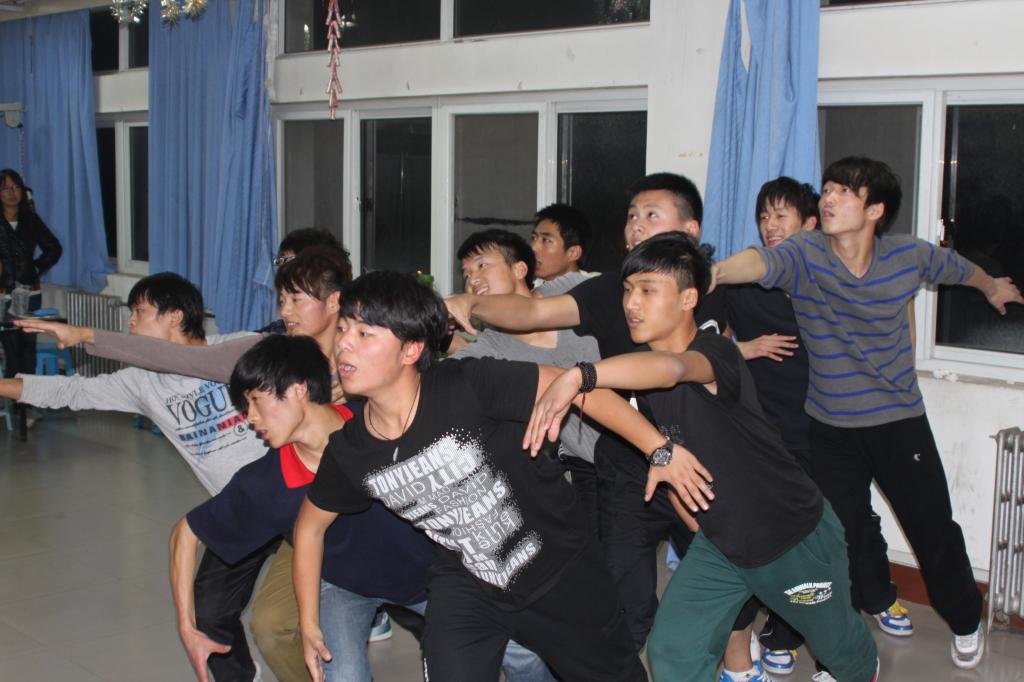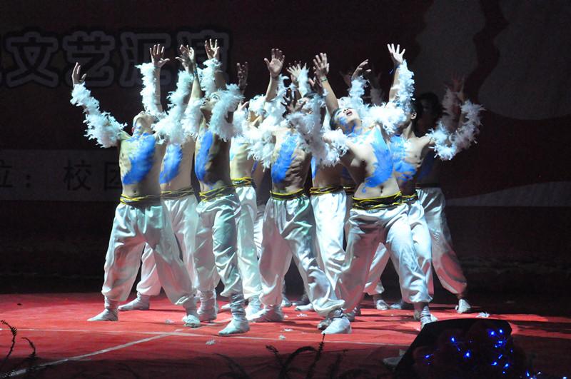 当初为何要选定《鸿雁》为12.9表演的舞蹈,现任能环公司的文艺部副部长李昊哲说当初看到《鸿雁》这个舞蹈时,就被它们不惧风雨、勇敢搏击的精神所折服。我们在交谈时了解到当初选人时经过了层层筛选,先是由班级自我报名又统一考察他们的自我协调能力,从中选取出手脚协调能力好的舞者。正如我们所看到此后每天披星戴月的排练,成就了这些“鸿雁们”飞翔的梦想。每一个动作,每一个表情都那样的让人叹为观止!他们进行着的是静态与动态的完美结合。与上年的《战魂》刚强之美相比,《鸿雁》更展示了一份风雨过后有彩虹的希望之美。走过窗外纷纷的雪季,漫天寒气也席卷不了这些“鸿雁”的跳舞热情。或许光滑又冰冷的地板见证了队员们的跌倒摔伤,或许无言的白色墙壁陪着他们一起快乐和悲伤。当队员们被问及各自的收获时,时任教练的给排水专业宁文煜说收获了一种快乐,一种充实。队员们说大家在一起建立了深厚的友谊,那种亲如自家兄弟一样的感觉经历过才懂得。每晚4个小时的训练再苦都不懈怠,大家一同为梦想拼搏、并肩作战的日子里,承载了能环公司的希望。训练之余常有员工会的兄弟姐妹们带着水果、甜品来慰问他们,那种刻在骨子里的信念使得他们面对各种压力都愈挫愈勇。犹记得正式比赛的当天,大家都精心地为他们化妆,每一笔的画眉都勾勒出能环人的气宇轩昂,每一层的颜料都渲染着能环人的志气昂扬。能环公司党总支副书记轩信飞、学工办主任李士杰和12级辅导员卜艳萍老师一起在9#610为他们加油鼓励!,终于激动人心的时刻到了,随着响彻体育馆的不凡口号之“激情飞扬,能环最强,鸿雁展翅,气宇轩昂”响起,所有的能环人万众齐心共同见证着精美绝伦的表演,这个沉淀了时间和付出的鸿雁们在12.9文艺汇演的晚会上志气高昂,勇敢飞翔,奏响了能环的响亮乐章!