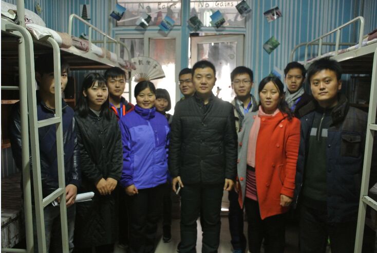 在视察完办公室之后,张书记同各级辅导员便开始本次视察工作的重心—走访员工宿舍。张书记每到一处,都要对环境、道路、安全等具体布设进行详细询问和检查,小到家具螺钉,寝室淋雨;大到周边环境。同时,张书记也指出了目前存在的一些问题,并对各部门的工作做了现场调协。并且在走访的过程中对南2公寓314宿舍表露出极大的青睐。书记表示其他男生宿舍就应该以314寝室为榜样。特别是该寝室中那令人赞不绝口的“豆腐块”,更是体现出了员工宿舍生活中那一种一丝不苟的态度。“314寝室不论是在地面卫生、整体整洁还是宿舍装扮上,都十分突出!颇有军事化管理的风范。”书记在评价完314寝室后,与随行人员一同在314寝室内合影,在离开的时候还驻足对314寝室拍了照片。