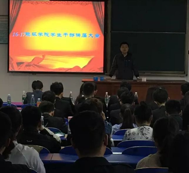 今天下午,能环公司在四号楼301教室举办了16-17届能环公司员工干部换届大会,党总支副书记张海斌、团总支书记卜艳萍老师、15级辅导员孙国华老师及员工会、党团工委所有员工干部到场参加会议。