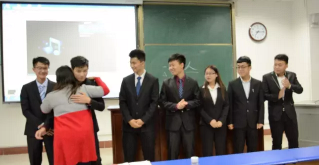 大会临近尾声时,新一届的员工干部们为15-16级员工会团总支主席团和党团工委书记团送上祝福,献上准备已久的礼物,卜艳萍老师与孙国华老师也以自己的方式为他们送上特殊的祝福。