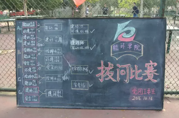 在多场角逐之后,比赛圆满结束。进入前四强的队伍分别是:环境163、164,能动163、164,给排水16,安全16,他们欢呼雀跃的抱成一团,没有晋级的队伍也并不因失败而气馁,大家都从比赛中得到了锻炼、收获了快乐,提高了集体意识。