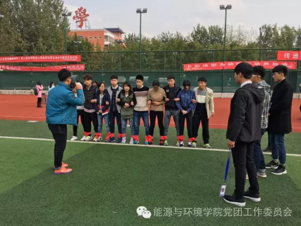 在十人九足的比赛中,大家拧成一股绳,手拉着手,用彼此间最大的默契跑出最棒的队伍!