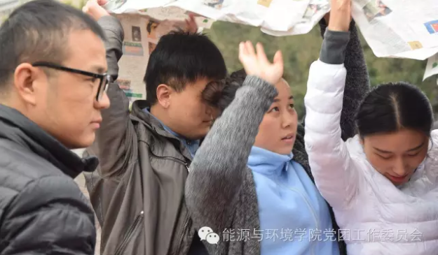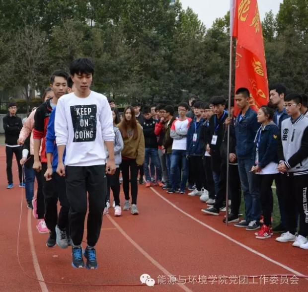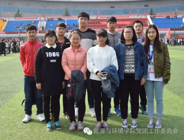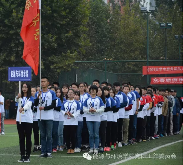 虽然天气寒冷,但是同学们仍激情似火,精神抖擞。开幕式开始,各方队在领队的带领下踏着整齐而又有劲的步伐,喊着“激情飞扬,能环最强”的口号走向主席台。