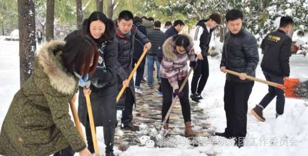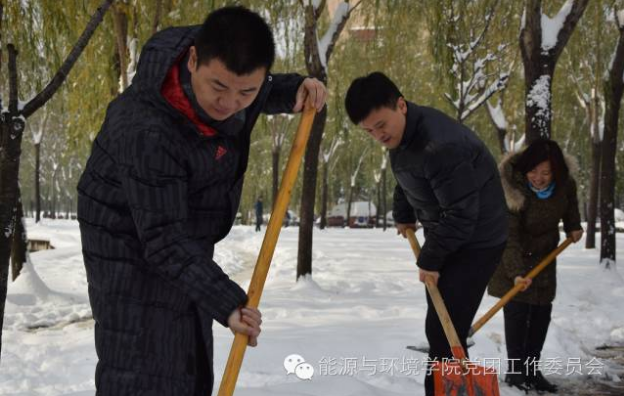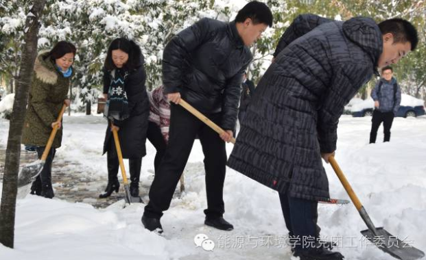 领导和同学们在雪地里依然辛苦的铲雪,为了同学们和老师们的出行安全问题,他们冒着寒冷的天气和滑到的危险,为大家做着自己力所能及的事情。