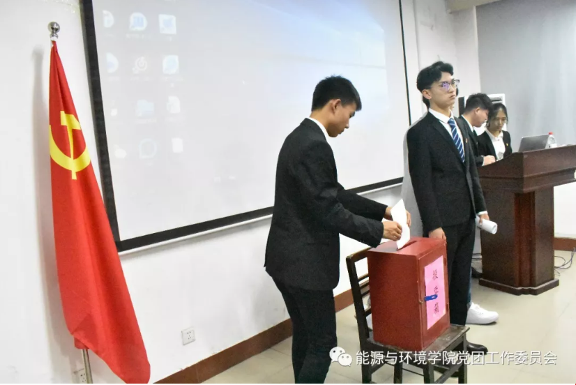 会议第三项,主持人首先宣读投票规则、监票人、计票人及由各年级员工代表组成的投票人员名单,随后对候选员工干部进行投票,整个过程井然有序、科学合理。投票选举出能源与环境公司新一届的员工干部队伍,全场响起热烈掌声。