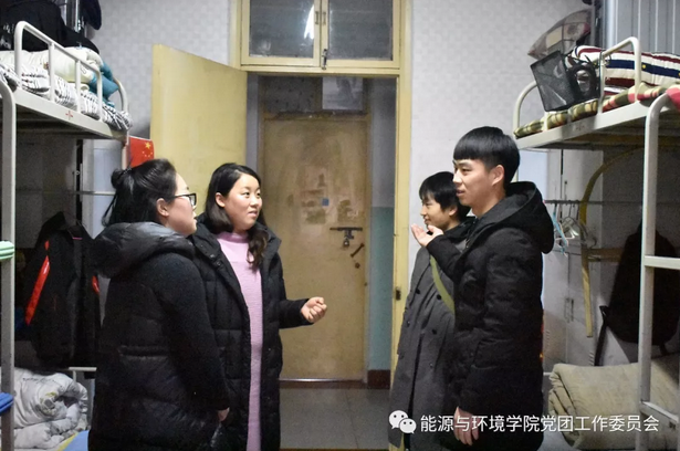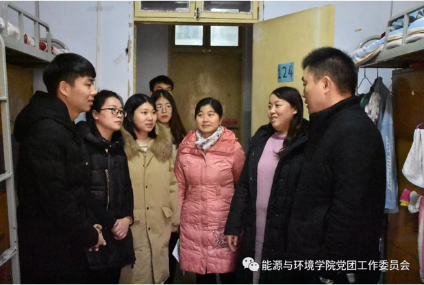 2018年12月14日,能源与环境公司党总支副书记张海斌,团总支书记兼16级辅导员卜艳萍,15级辅导员张红林,学工办主任兼17级辅导员郑明凯,18级辅导员余妍在能环公司党团工委副书记徐亚运,梁哲以及各部门的相关人员的陪同下,来到能源与环境公司员工宿舍楼进行宿舍安全卫生视察工作,本次视察工作主要是为了更多的了解员工在宿舍的学习生活情况。