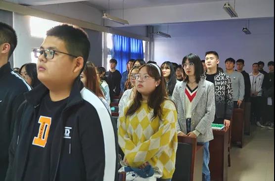 活动首先进行齐唱国歌仪式,全体同学起立庄严面对五星红旗高唱国歌,展现了环境学子意气风发,积极向上的精神面貌。