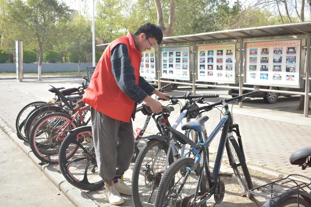 文明摆放,美化校园。下一站,志愿者们对校园里乱摆乱放乱停的自行车和电单车进行了统一规范整理,将单车搬至指定的停车区域,在摆放单车的同时,积极向身边的同学们倡导文明出行、规范停车的理念。风吹的散被子,但吹不散的是志愿者助人为乐的心,看到被子被吹散到地上,志愿者们细心地将其一一整理,活动中,不仅提高了同学们社会实践的能力,也提升了社会责任意识与服务意识,深刻体会到了雷锋助人为乐的快乐。