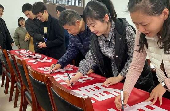 最后,师生一起在条幅上签名,展示了公司考研学子的信心与决心。一句句祝福印在横幅,更印在心中,将无限祝福浓缩相刻在字里行间。