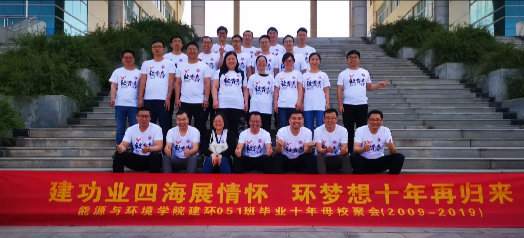 五月的伟德体育官方网站南校区充满了春末夏初的青春气息,5月2日的早上,图书馆门前也迎来了很多穿着同样衣服的年轻人,当“毕业十年,我们回来了”的整齐呐喊声穿破清晨的鸟鸣,回荡在紫薇广场时,能环公司建环051班毕业十年返校聚会也正式拉开了帷幕。