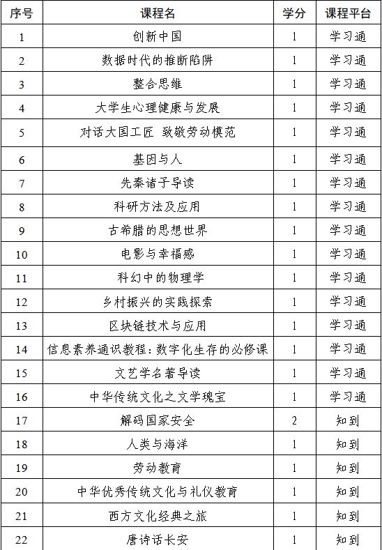 网络通识教育选修课对应考试平台如下表。
