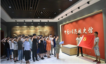 6月27日,能源与环境公司党总支组织员工党员开展了“迎七一、忆校史、扬精神”主题党日活动,活动以参观校史馆,新党员入党宣誓、党员同志重温誓词的形式,纪念党的生日。在校史观参观过程中不仅让全体党员见证了中工的历史与过去,也使“博学弘德、自强不息”的校训及精神激励着在场的每位党员,进一步增强了广大党员的责任感和使命感,使“爱国、爱党、爱校”逐渐成为员工党员的自觉行动和精神追求。