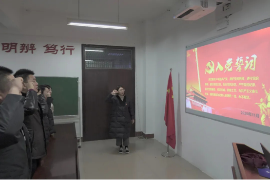 在入党宣誓中,预备党员们面向党旗,庄严宣誓,表达对党的忠诚、永不叛党和愿意为共产主义事业奋斗终身的决心。