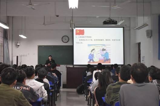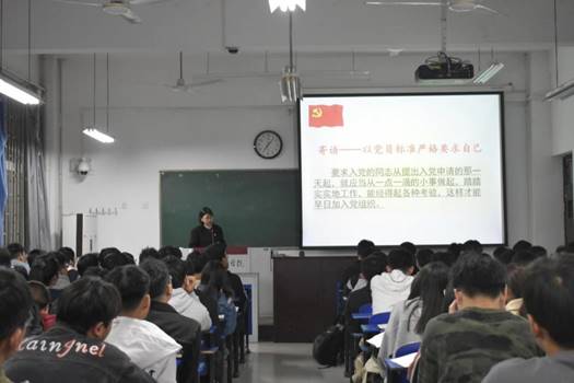 余老师引用了毛主席《延安文艺座谈会上的讲话》中提到的“有许多党员在组织上入了党,思想上并没有完全入党”,进而阐述了什么是正确的入党动机、为什么要端正入党动机、如何在实践中不断端正入党动机、端正入党动机的基本要求和基本途径。在场的积极分子如醍醐灌顶,被纯粹的党的精神所感染,对党的自我牺牲精神有了更加深刻的认识。