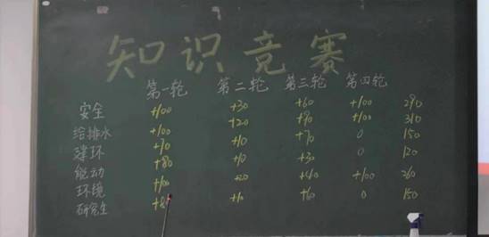 经过四轮的激烈比拼,最终成绩尘埃落定:给排水专业以310分的成绩位居第一名、安全专业以290分的成绩取得第二名、环境专业以260分的成绩取得第三名