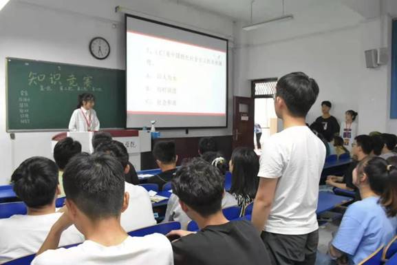 比赛在火热的进行,题目的难度也逐步提升,各位参赛队员为了自己专业队伍的荣誉,竞争逐渐激烈,队员积极地抢答问题,记分员紧张且又准确的记录分数,加上同学们热情而不断的掌声,这些使得赛场氛围格外热烈。