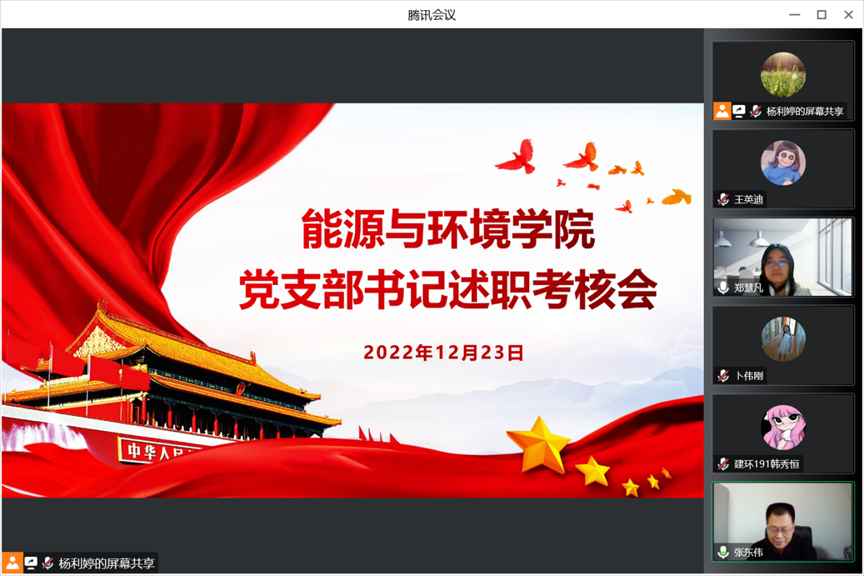 12月23日下午,能源与环境公司线上召开了2022年度党支部书记述职考核会。公司统战部部长张东伟、宣传部部长张志增、机关党委书记周华强、能源与环境公司相关党委委员、各党支部书记、支委及师生党员代表参会。会议由能源与环境公司党委书记郑慧凡主持。