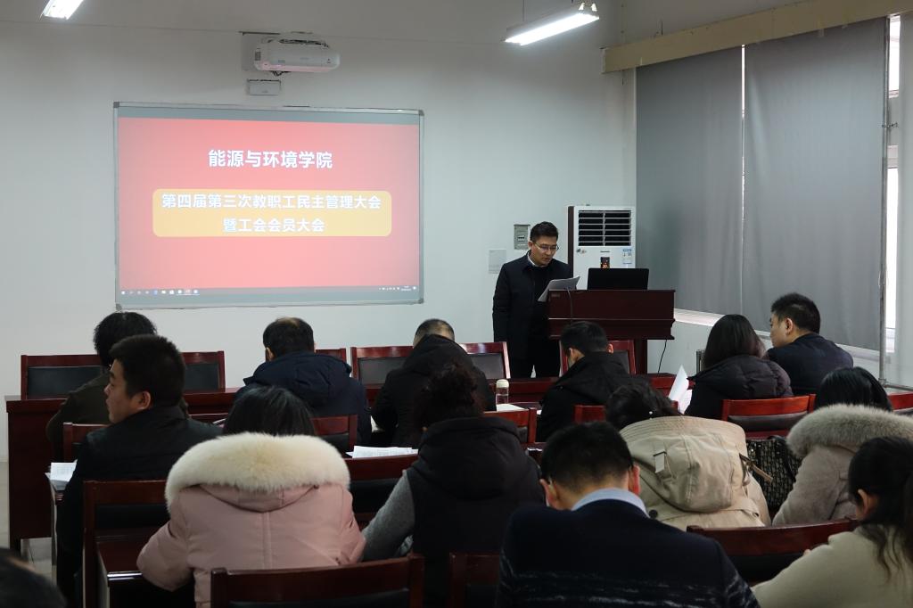 2019年12月31日下午1:45,能源与环境公司在9号楼201会议室召开了“能源与环境公司第四届第三次教职工民主管理大会暨工会会员大会”,公司党总支书记丁淑敏,经理段学军,副书记张海斌,副经理张定才、朱彩霞、王方及全体教职工出席了本次大会,会议由分工会宣传委员曹侃主持。